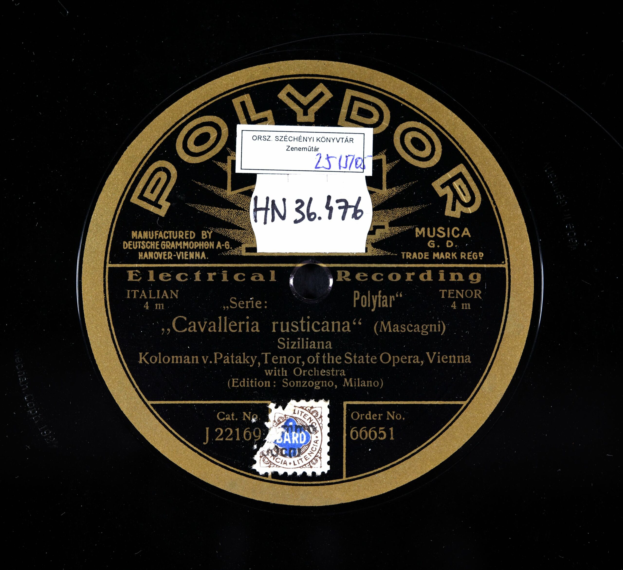 [Előadja] Koloman von Pataky, Tenor, of the State Opera, Vienna with Orchestra