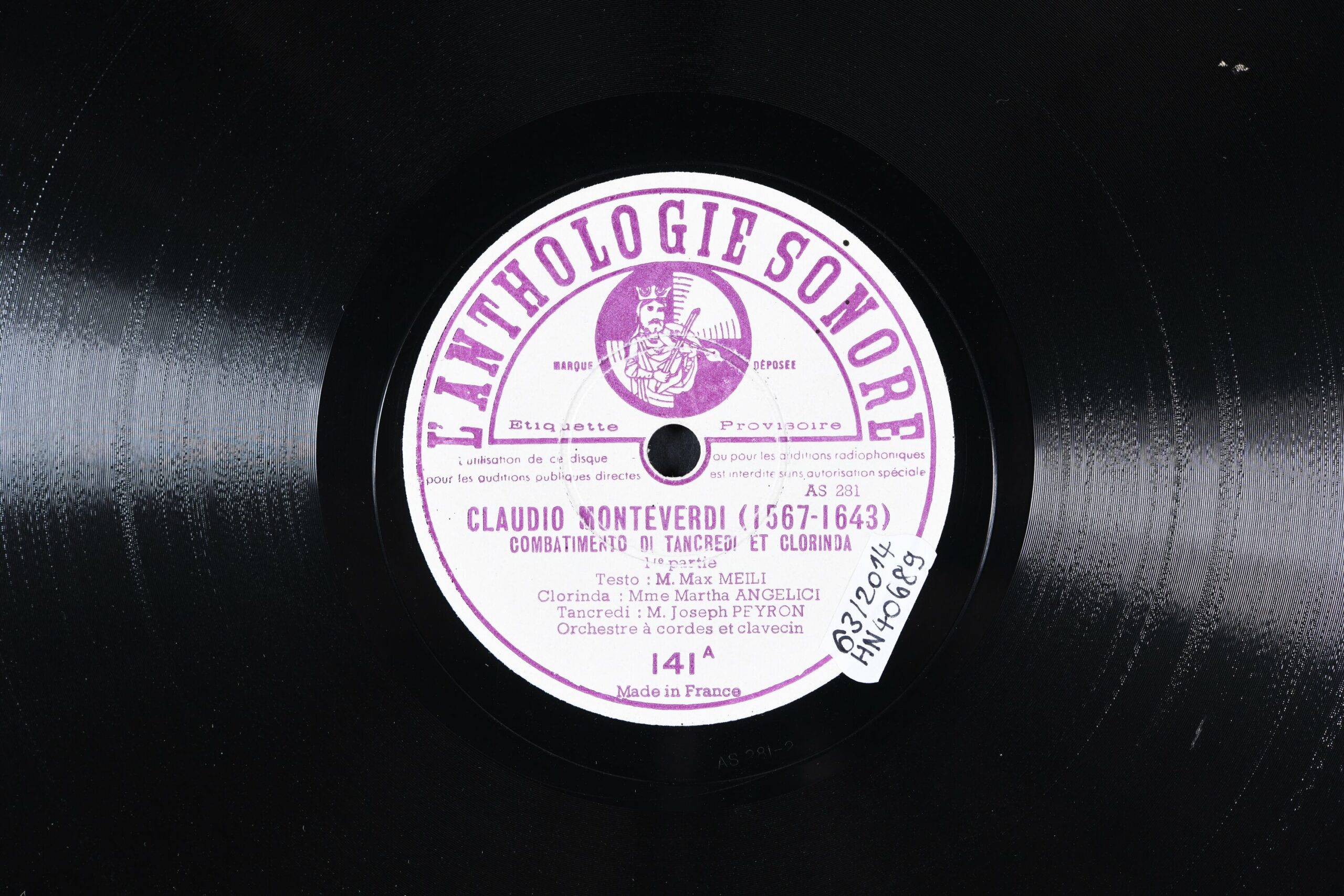 [1.] [Éneklik] Testo: M. Max Meili ; Clorinda: Mme Martha Angelici ; Tancredi: M. Joseph Peyron, Orchestre à cordes et clavecin. [2.] [Énekli] Tancredi: M. Joseph Peyron, Orchestre à cordes et clavecin