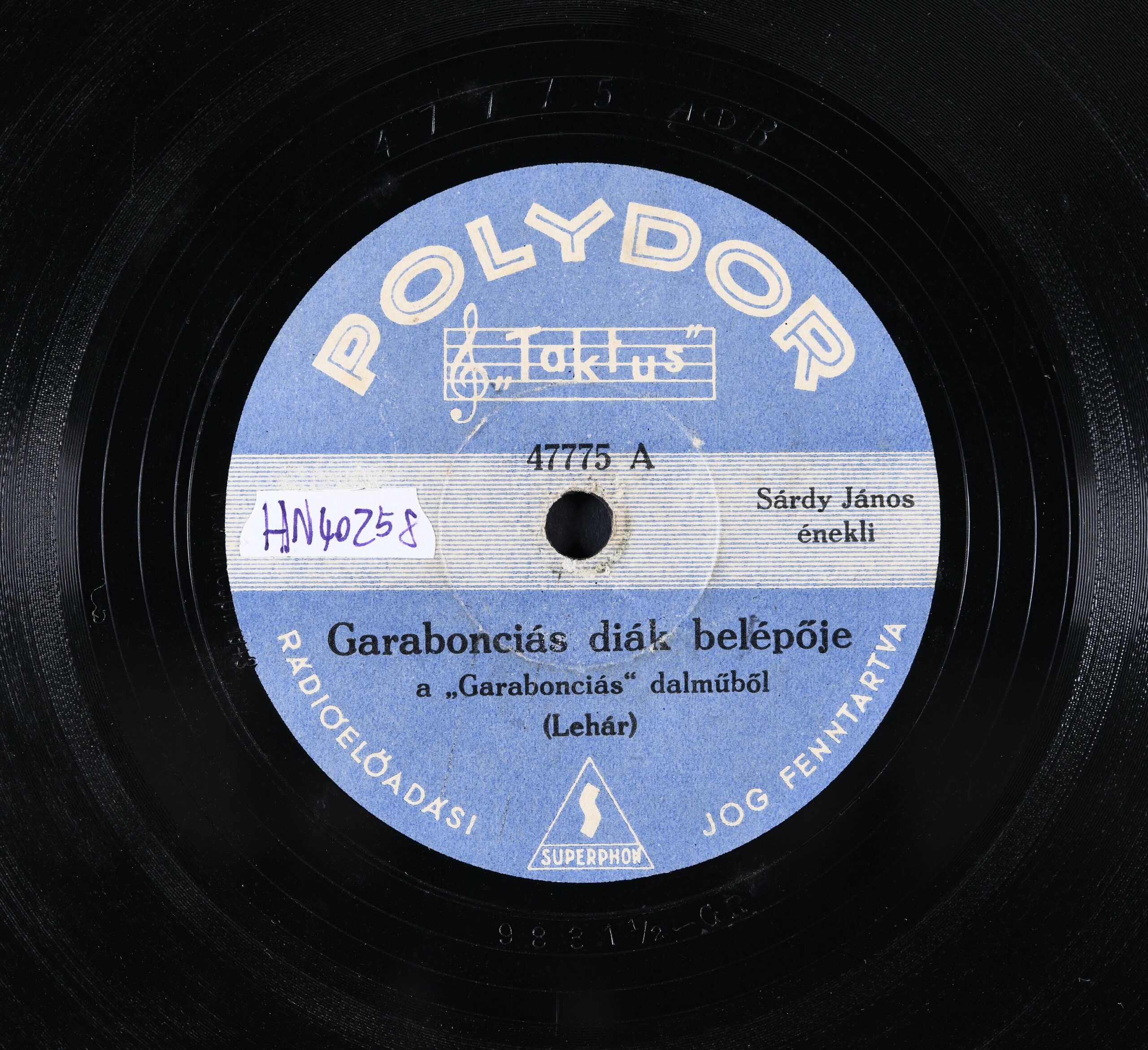 Előadja: Sárdy János énekli [ismeretlen zenekari kísérettel]