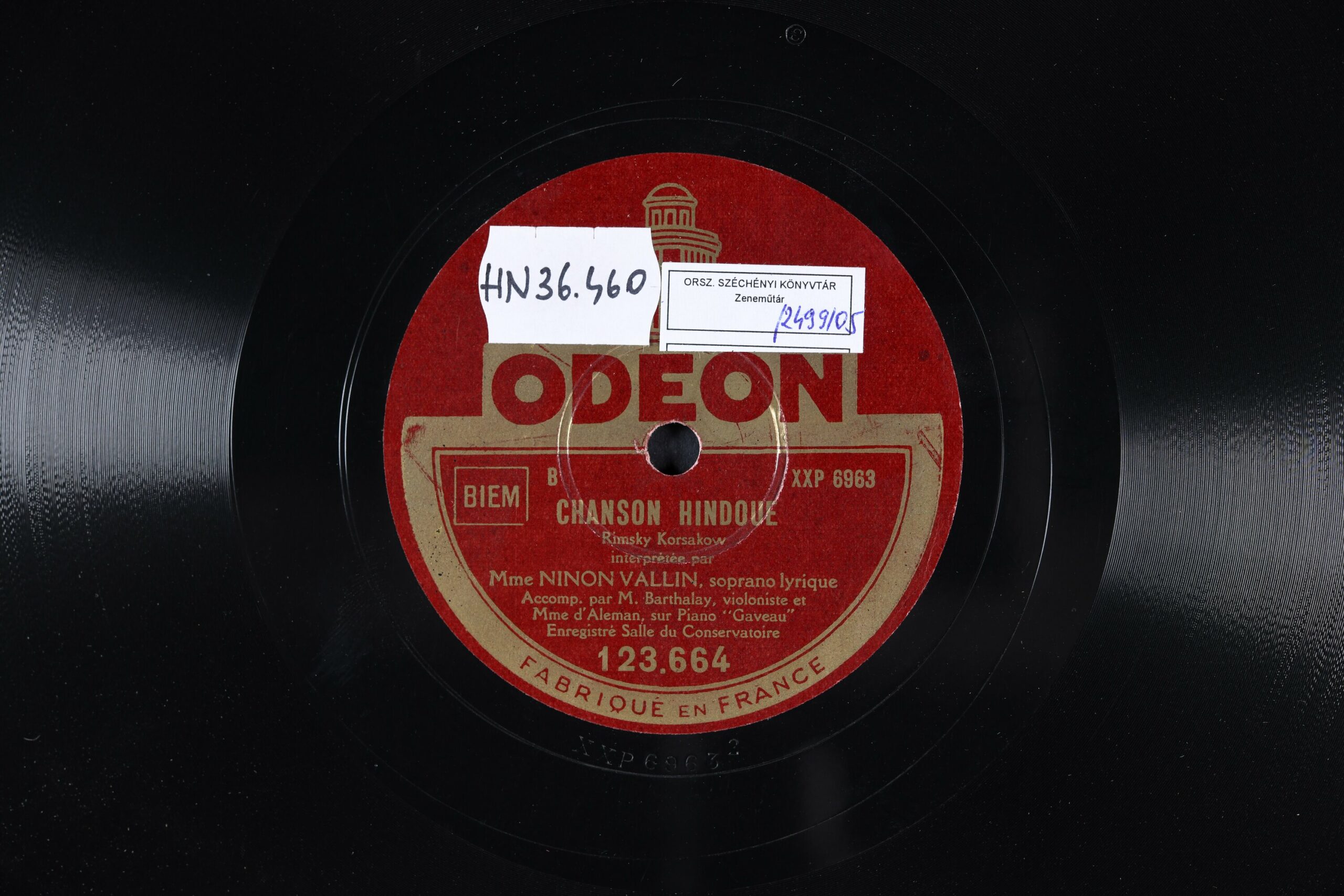 Interprétée par Ninon Vallin, soprano lyrique ; Accomp. par M. Barthalay, violoniste ; Mme D'Aleman, sur Piano "Gaveau"