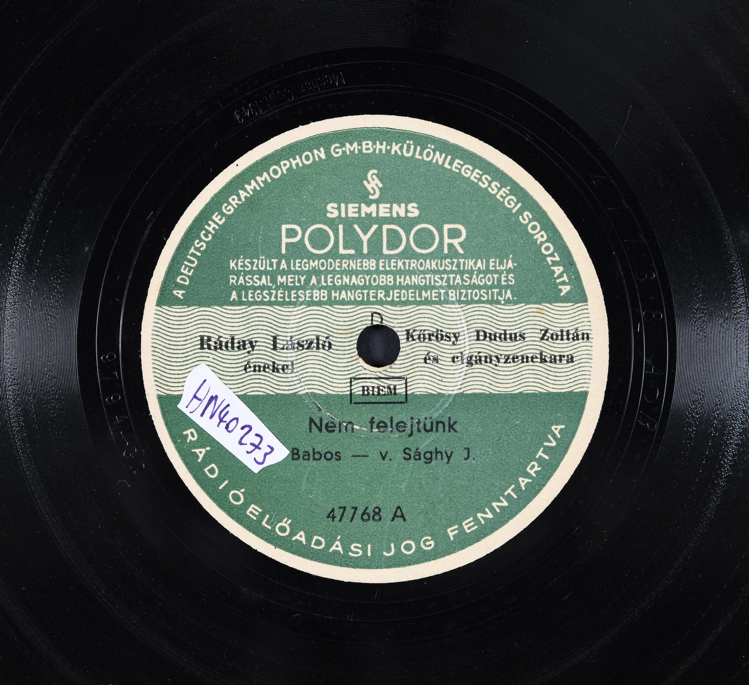 Előadja: Ráday László énekel ; [kíséri] Kőrösy Dudus Zoltán és cigányzenekara