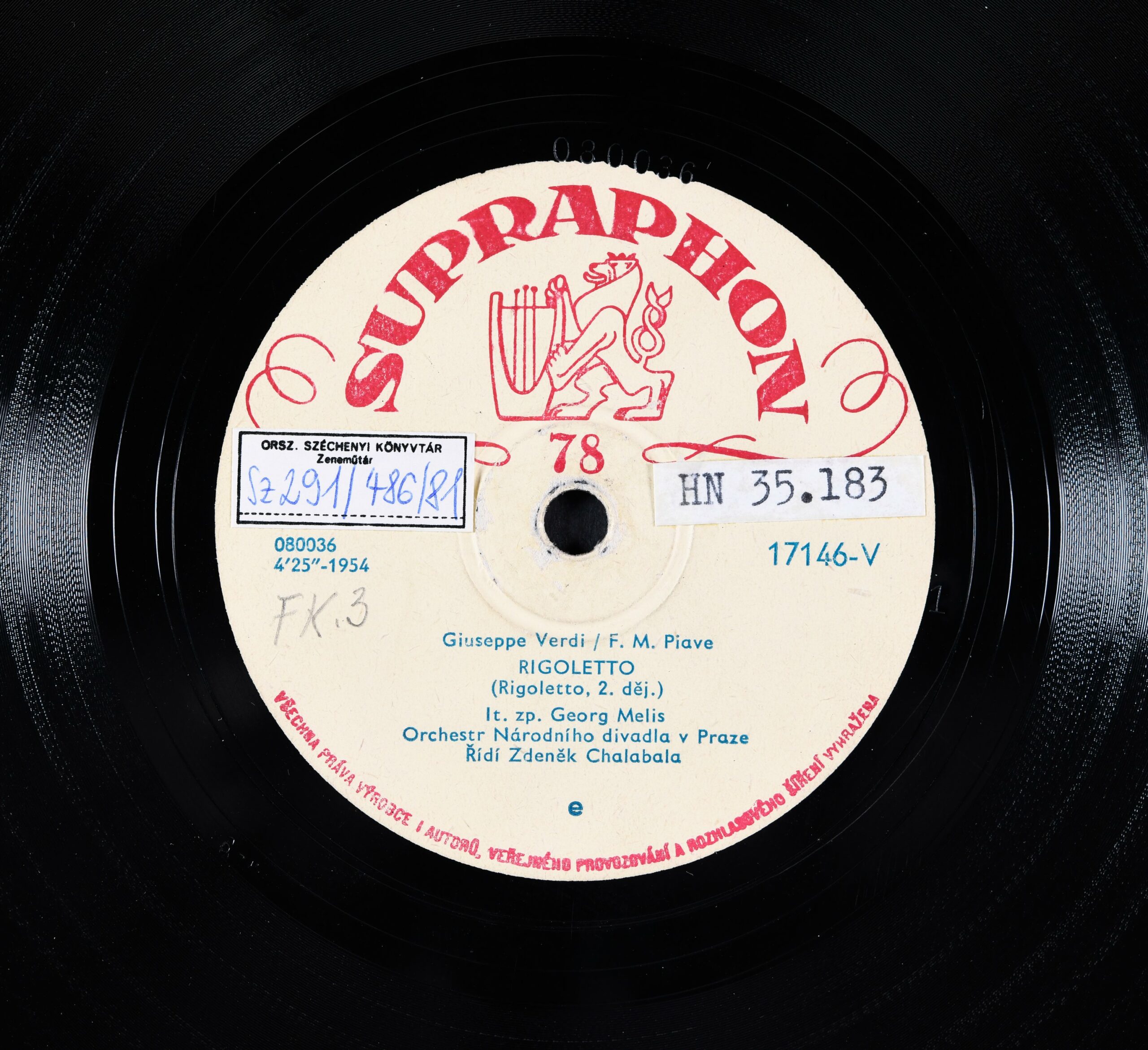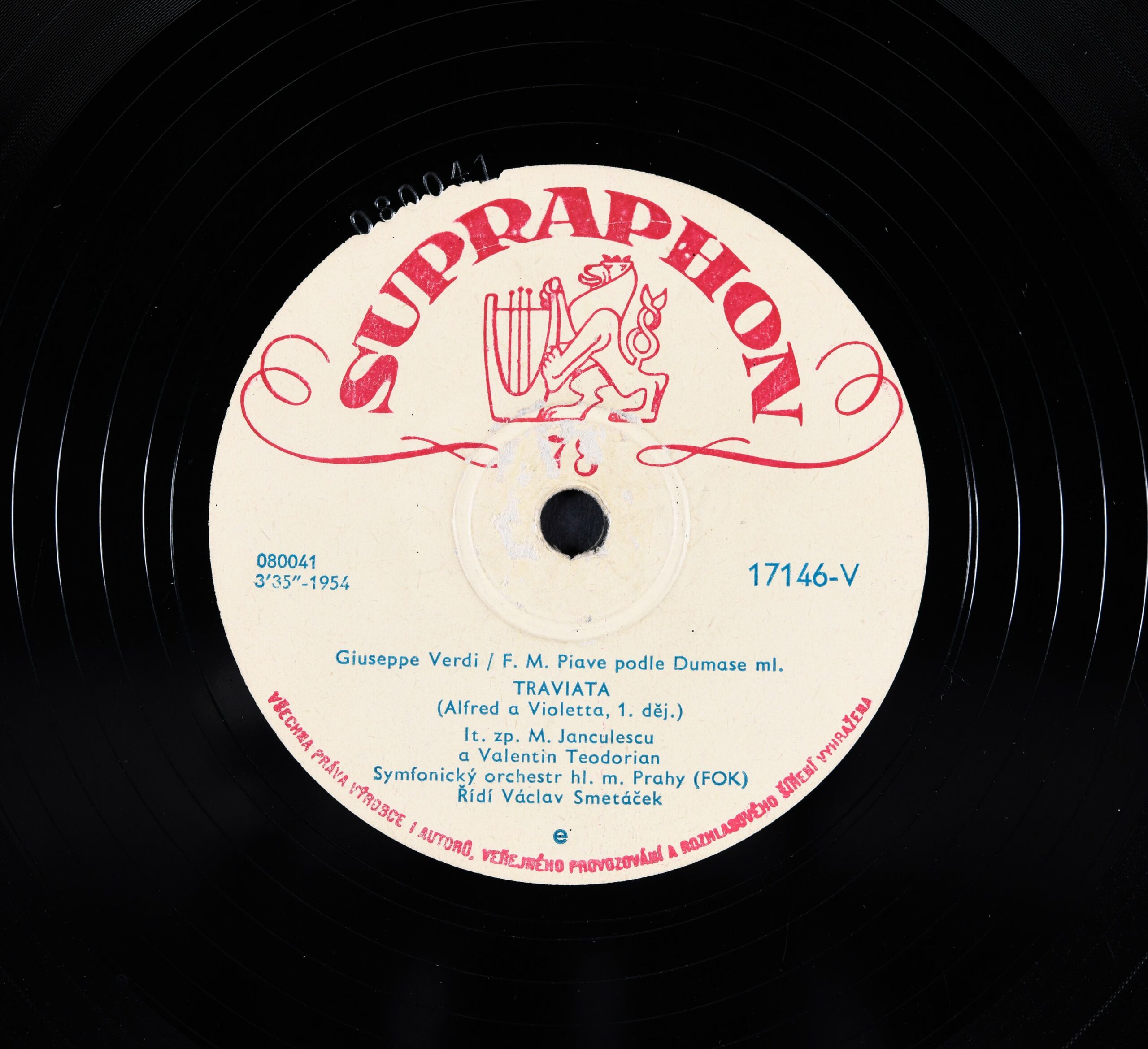 Előadja: [1.] It. zp. Georg Melis ; Orchestr Národního divadla v Praze ; Řídí Zdeněk Chalabala; [2.] It. zp. M. Janculescu a Valentin Teodorian ; Symfonický orchestr hl. m. Prahy ; Řídí Václav Smetáček